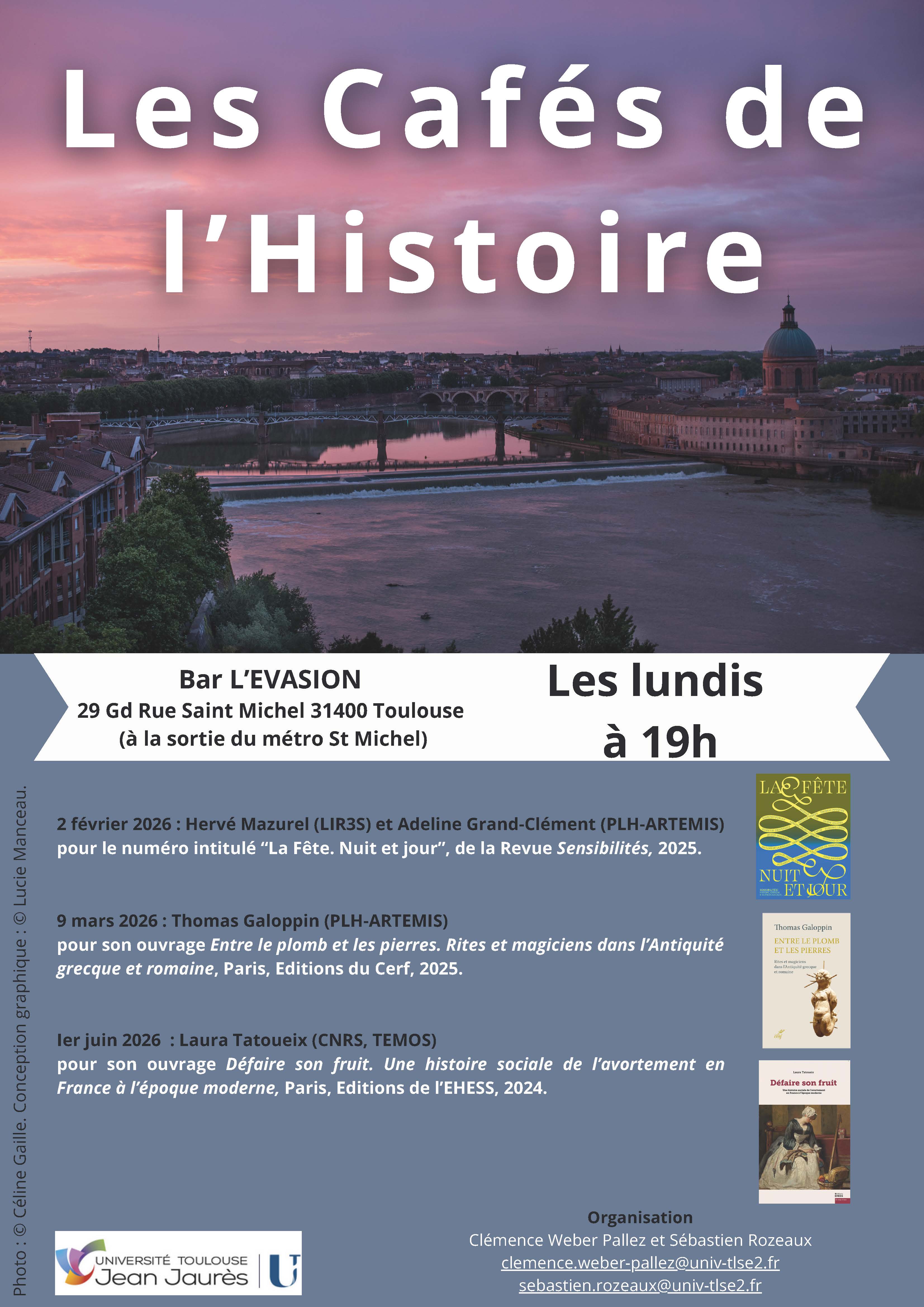 Nous vous proposons de nous rencontrer une fois par mois autour d'un verre pour discuter avec des historiens et des historiennes de leur projet ou de leur dernière publication. Les étudiants sont plus que les bienvenus.